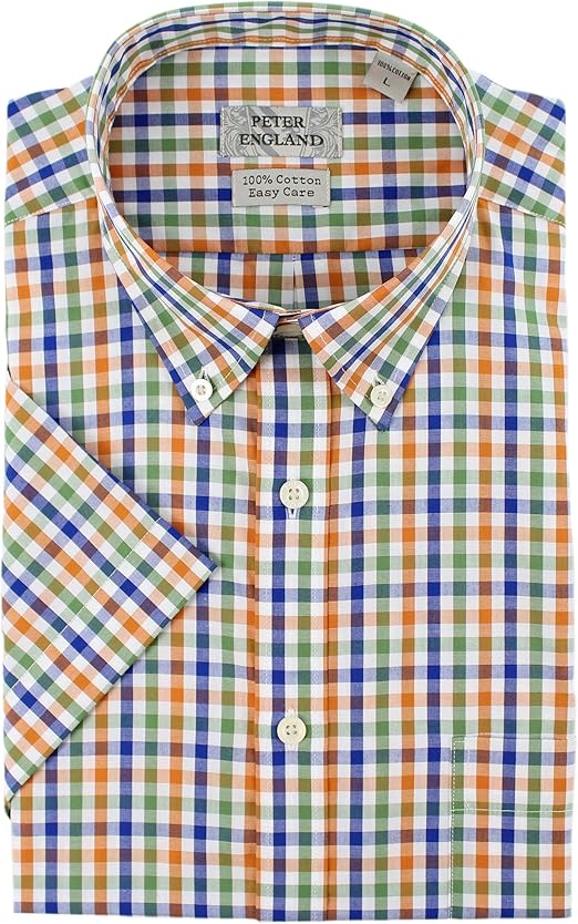Peter England Camicia In Cotone A Maniche Corte Con Motivo A Quadri Colore Arancione Blu E Verde Amazon It Abbigliamento