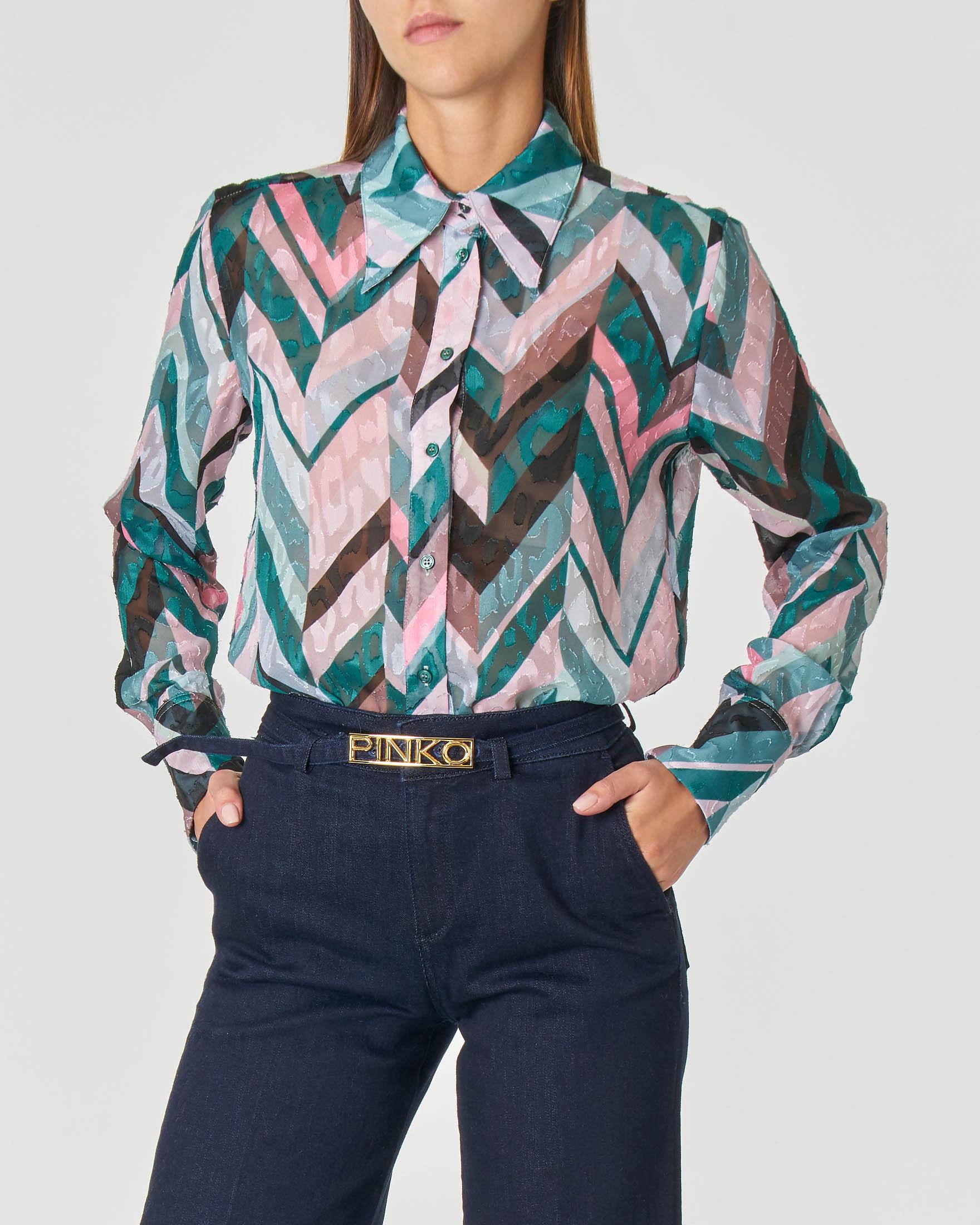 Camicia In Tessuto Fil Coupe Con Disegno Chevron Con Nuances Verdi E Rosa Pellizzari E Commerce