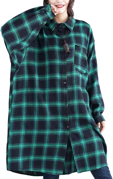 Mallimoda Donna Oversize Camicetta A Quadri Manica Lunga Casual Camicia Shirts Verde Xl Amazon It Abbigliamento