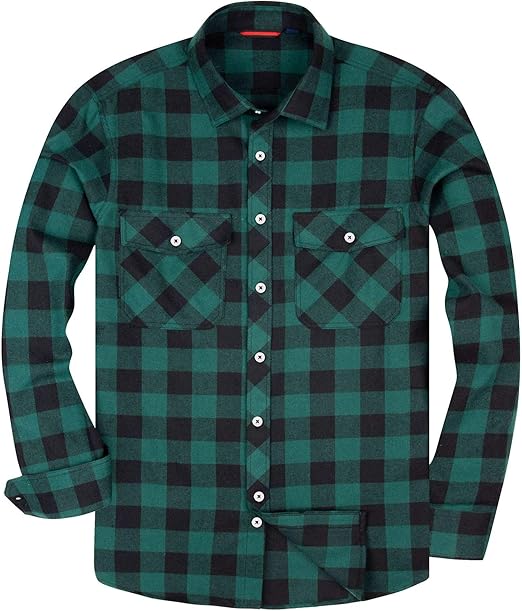 Siliteelon Camicia Da Uomo A Maniche Lunghe In Flanella Verde E Nero L Amazon It Abbigliamento