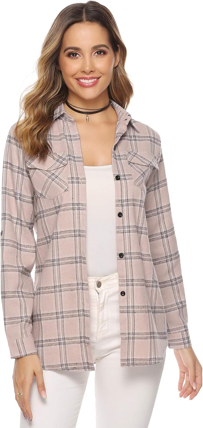 Abbigliamento Abollria Camicia A Quadri Flanella Da Donna A Lunga Manica Blusa Camicetta A Quadri Classica Con Tasche Bluse E Camicie