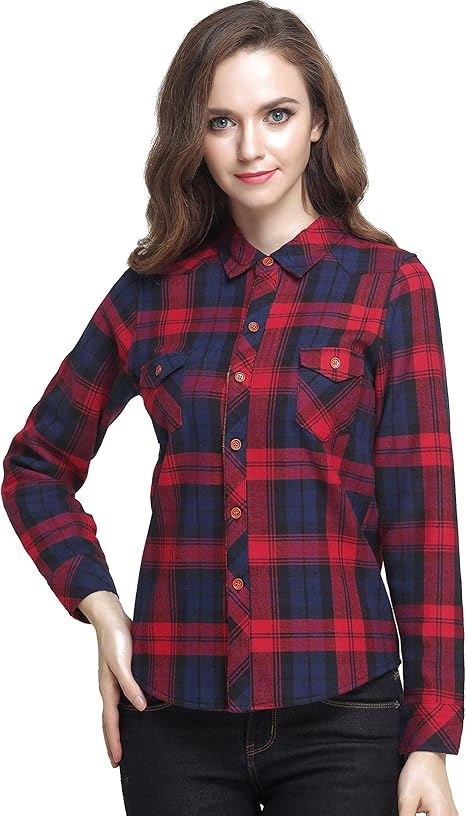 Camii Mia Donna Camicia Blusa Button Down Manica Lunga Stile Lana Stampato A Quadri Amazon It Abbigliamento