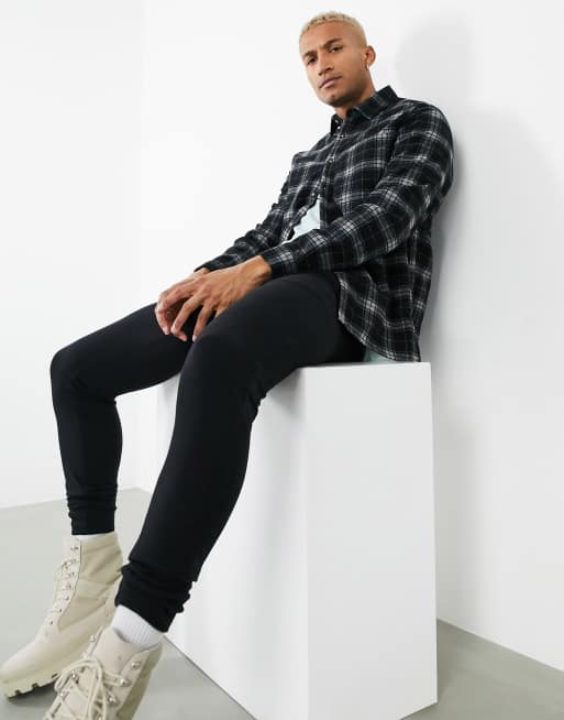 Asos Design Camicia Nera In Misto Lana A Quadri Asos