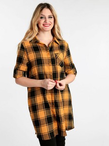 Camicia Lunga A Quadri In Caldo Cotone Con Chiusura Frontale In Botton Luxurywomantrend