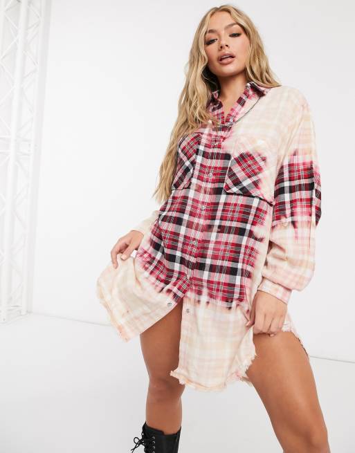 Camicia Lunga In Viscosa Con Motivo A Quadri A Maniche Lunghe Boohoo