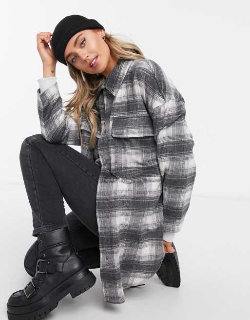 Stradivarius Giacca Camicia Lunga Grigia A Quadri Evesham Nj