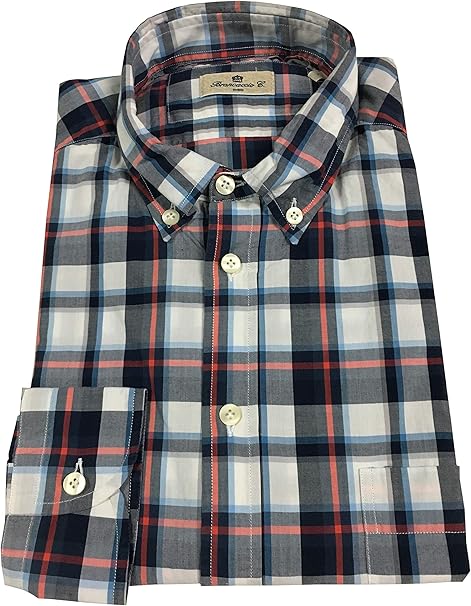 Camicia Classica A Quadri Rossi E Blu Collo Saveone