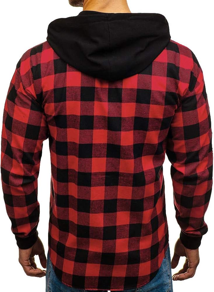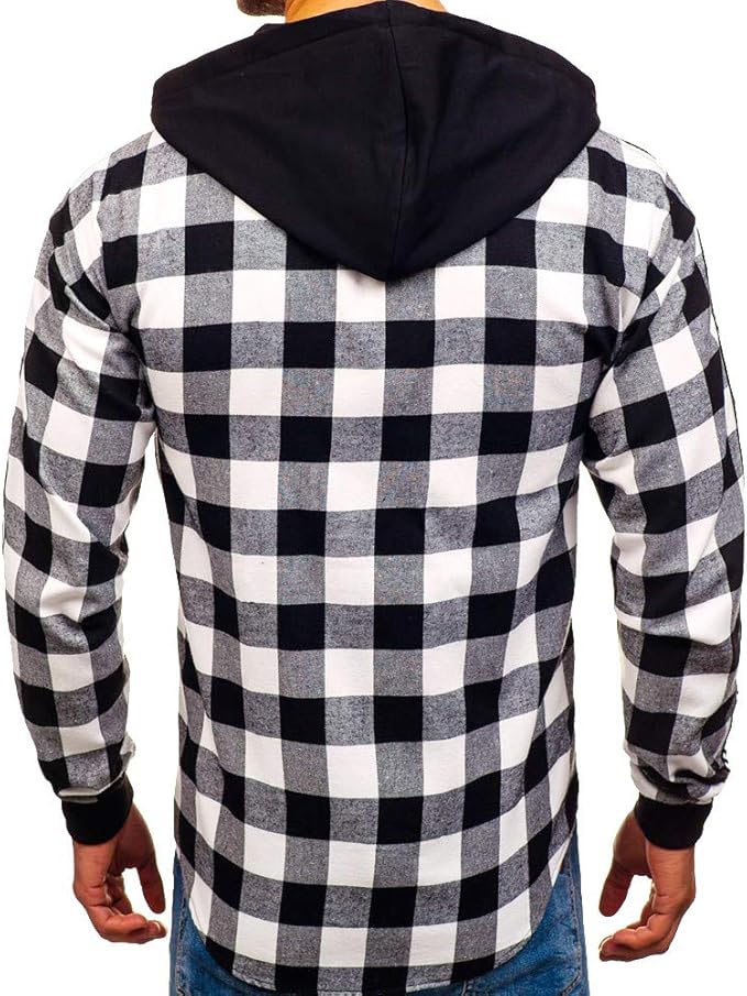 Mr Stream Camicia Hooded Da Uomo Da Boscaiolo Plaid Flanella A Quadri Checked Camicia Imbottita Da Lavoro Di Cotone Cappotto Hoody Camicie Casual Abbigliamento