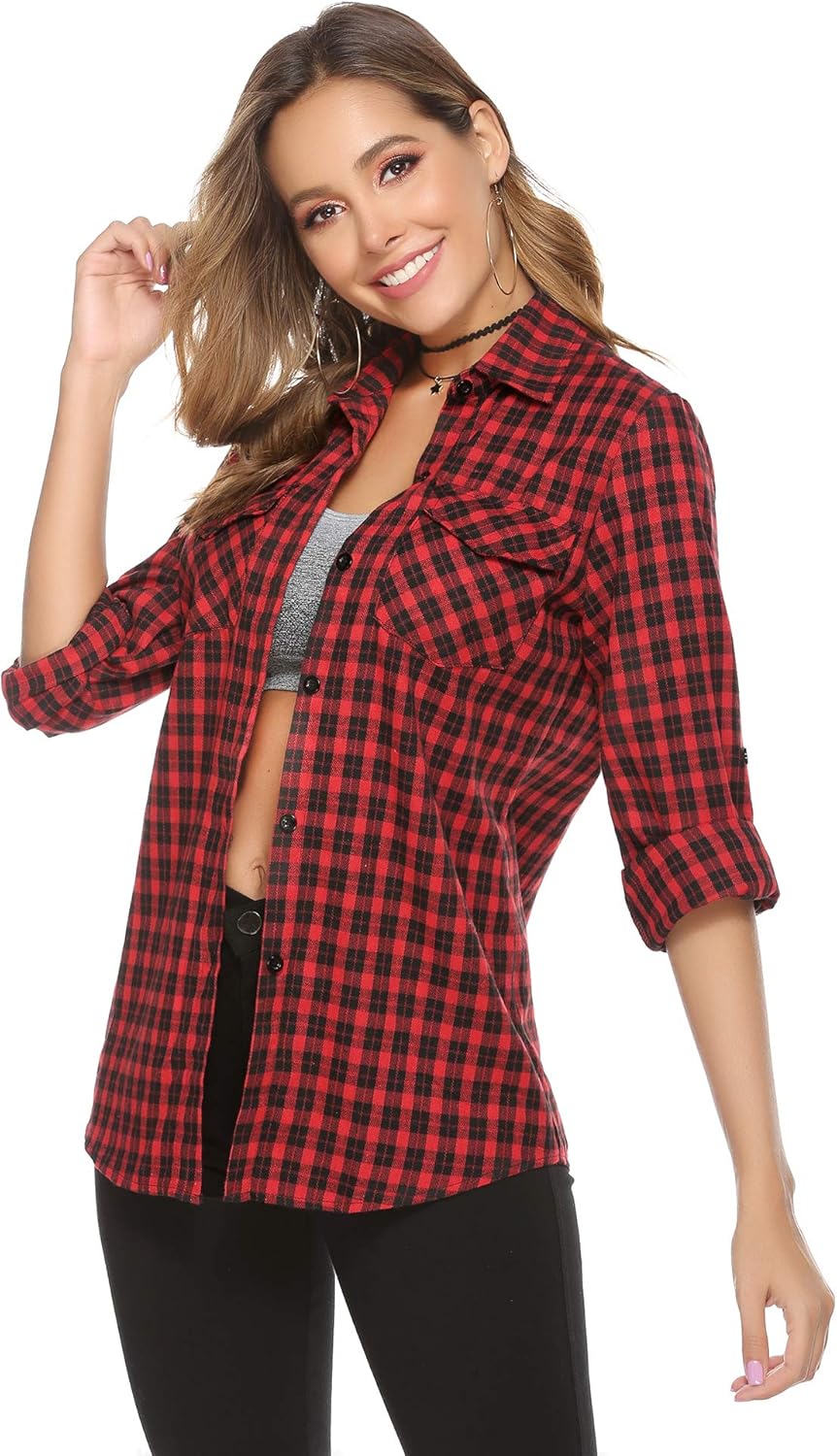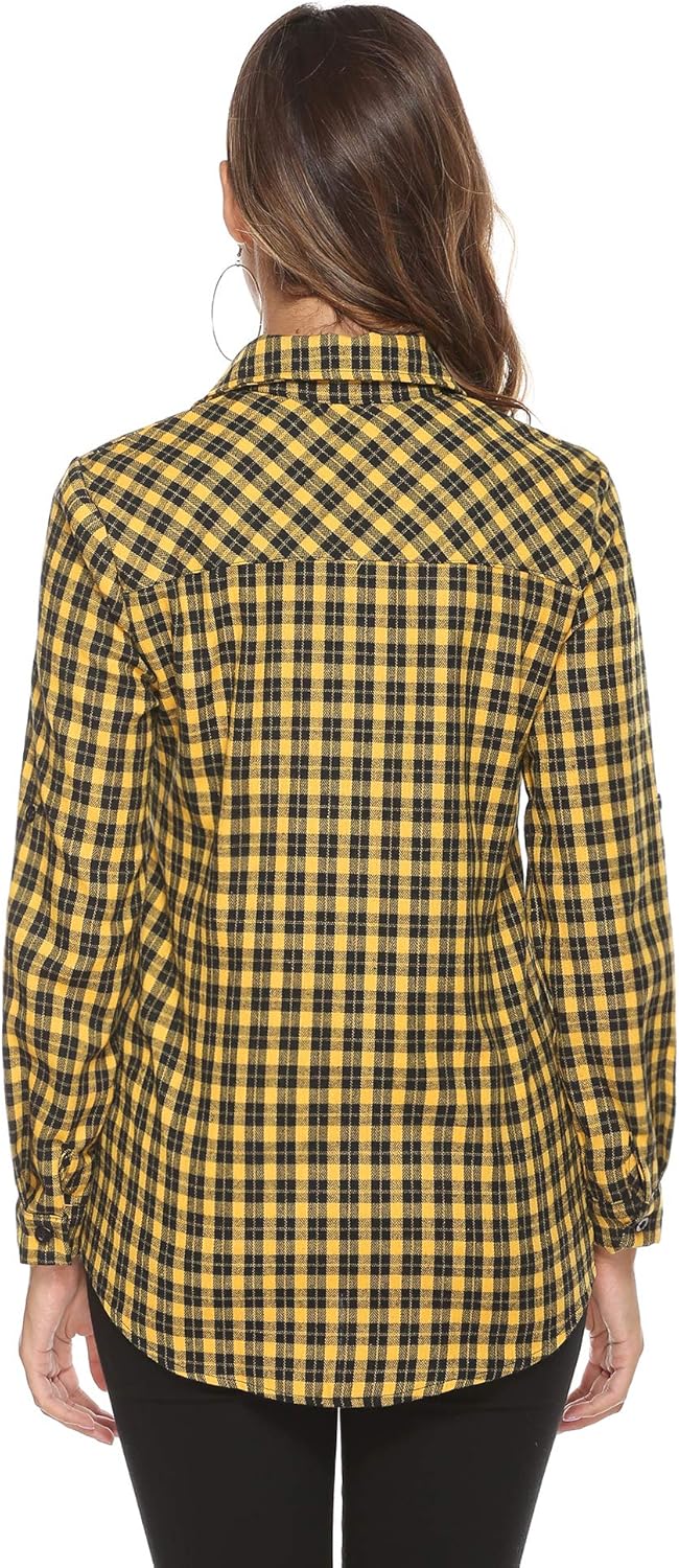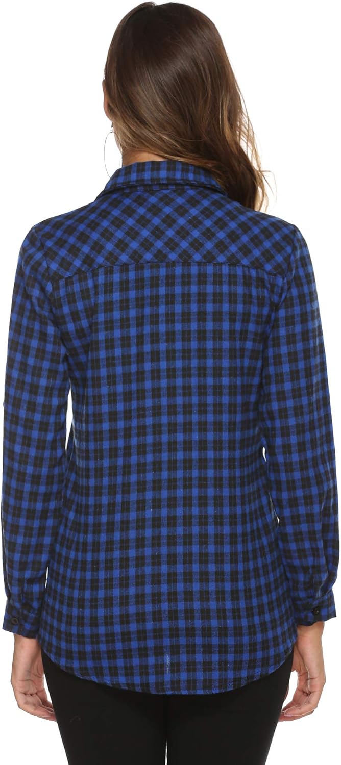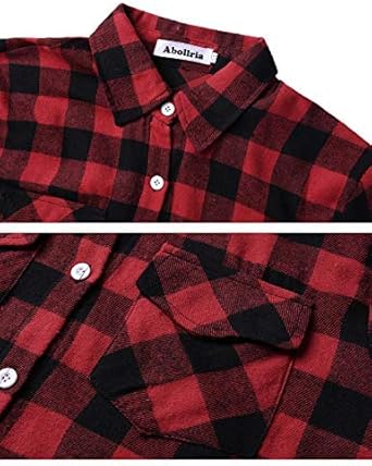 Abbigliamento Abollria Camicia A Quadri Flanella Da Donna A Lunga Manica Blusa Camicetta A Quadri Classica Con Tasche Bluse E Camicie