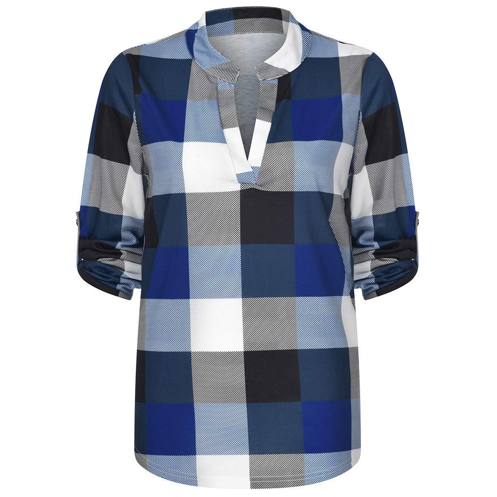Zanzea Camicia Blusa A Quadri Manica Lunga Casual Elegante Cotone Sexy Ufficio V Collo T Shirt Maliga Per Donna Nero Eu 42 Amazon It Abbigliamento