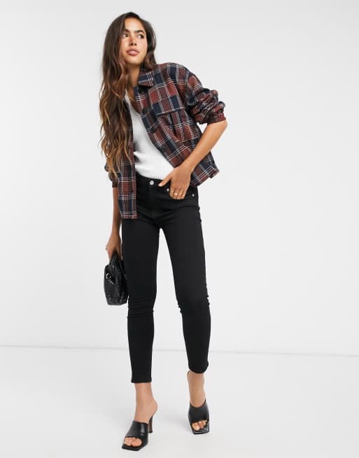 Vero Moda Camicia Giacca A Taglio Lungo Nero E Cammello A Quadri Evesham Nj