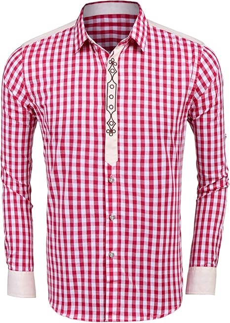 Camicie Casual Abbigliamento A Scacchi Trachtenhemd Per Il Costume Lederhosen Camicia Di Svago Oktoberfest Rosso