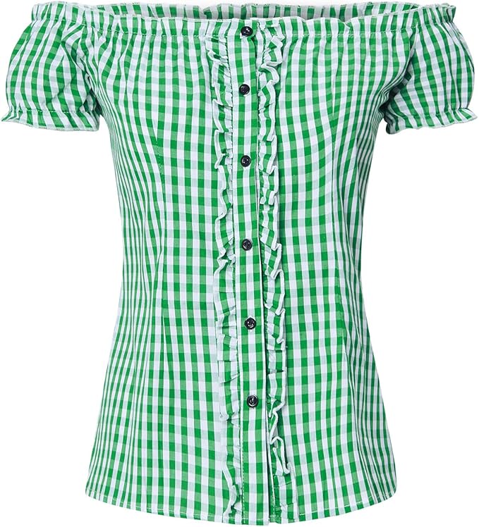 Idgreatim Camicetta Da Donna Tradizionale Dirndl Carmen Camicetta A Quadri Oktoberfest Camicia Casual A Maniche Corte Con Bottoni A Quadri Verde 72 It Xl Amazon It Abbigliamento