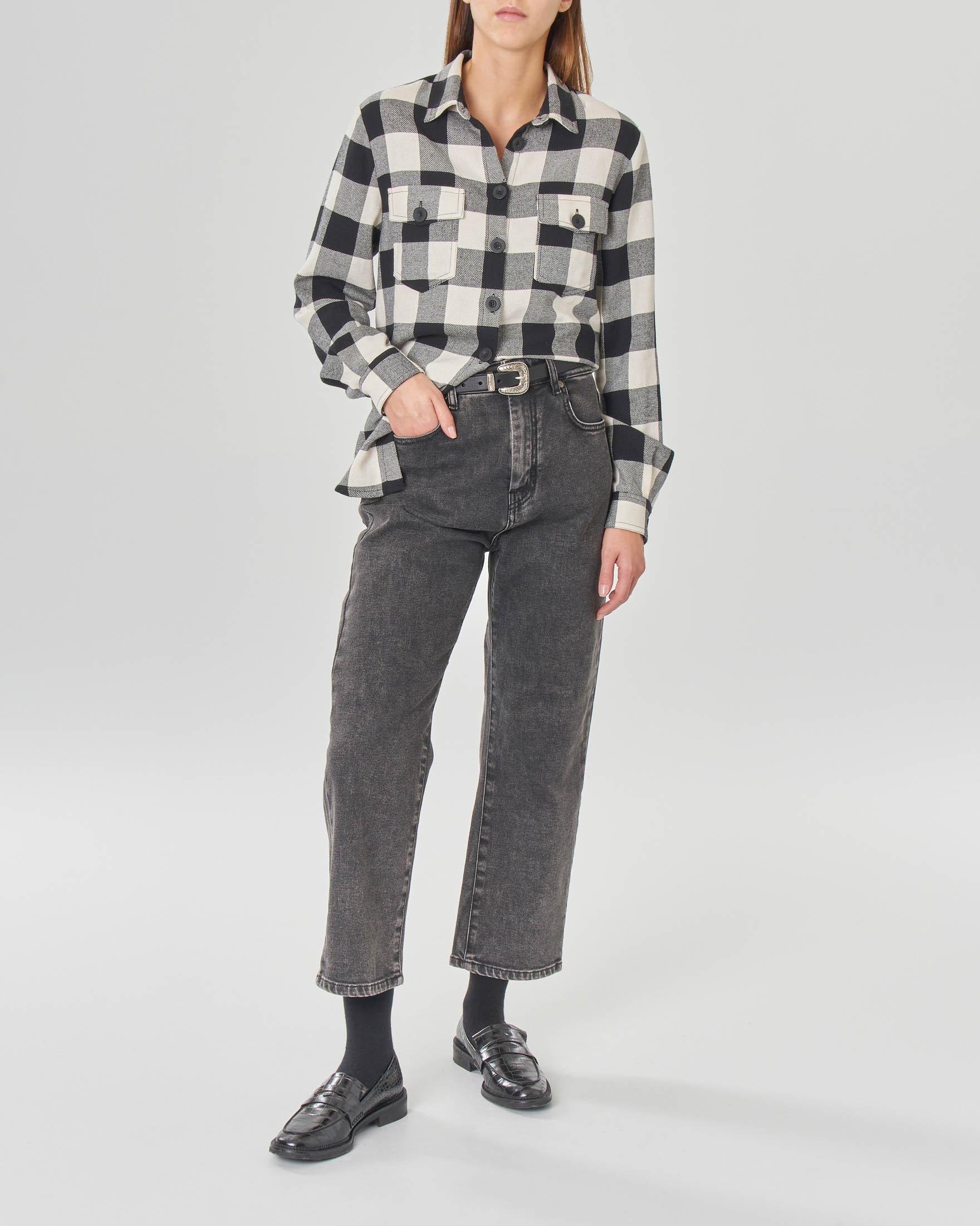 Camicia In Misto Cotone A Fantasia Check A Quadri Bianchi E Neri Pellizzari E Commerce