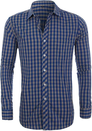 Youthup Camicia Da Uomo A Quadretti In Cotone A Maniche Lunghe Scollo Quadrato Amazon It Abbigliamento