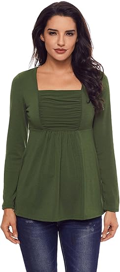 New Verde Militare Scollo Quadrato Aderente A Maniche Lunghe Camicetta Estate Camicia Top Casual Wear Taglia Uk 16 Eu 44 Amazon It Fai Da Te