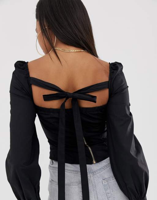 Bershka Camicia Arricciata Nera Con Scollo Quadrato Asos