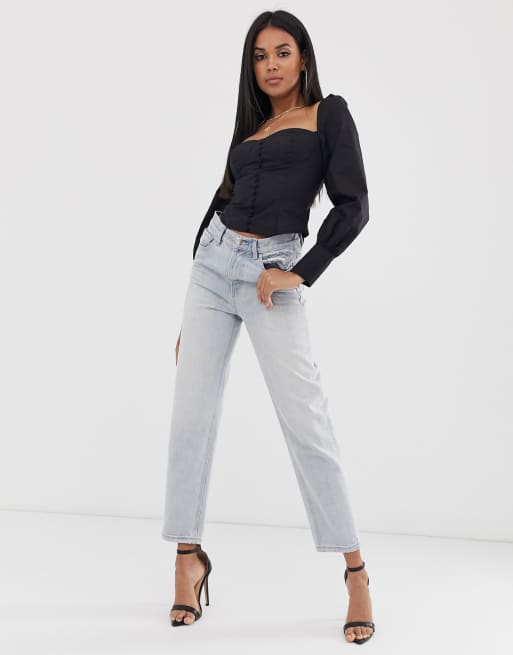 Club L London Camicia Con Scollo Quadrato Bottoni E Maniche A Sbuffo Nera Asos