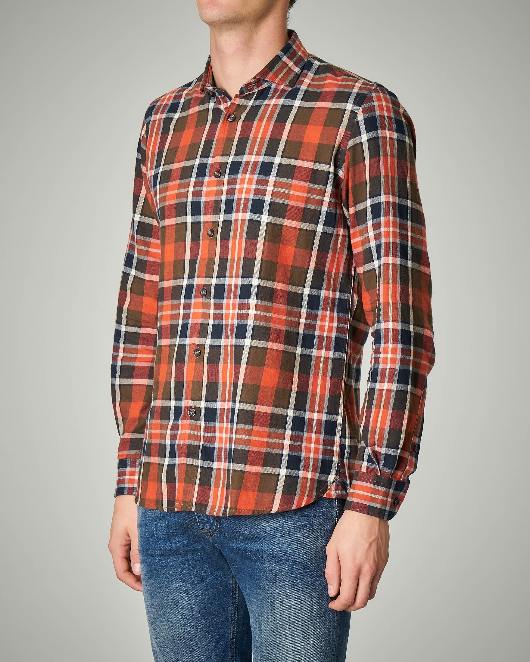Camicia A Quadretti Arancioni E Verdi In Flanella Pellizzari E Commerce