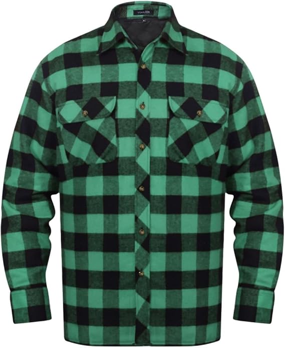 Camicia Di Flanella Da Uomo Imbottita A Quadri Verde Nero M