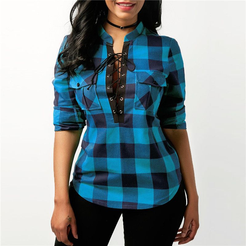 Acquista Camicie A Quadri Da Donna 2018 Camicette A Maniche Lunghe A Manica Lunga Camicia Da Ufficio In Cotone Con Lacci Da Donna Tunica Casual Tops Plus Size Blusas A 10 56