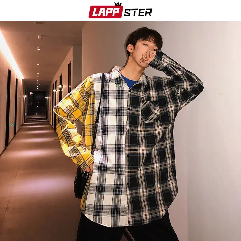Lappster Uomini Di Grandi Dimensioni Camicia A Quadri In Cotone 2020 Uomo Hip Hop Patchwork Button Up Camicia A Maniche Lunghe Coppia Coreana Harajuku Abbigliamento Camicie Casual Aliexpress