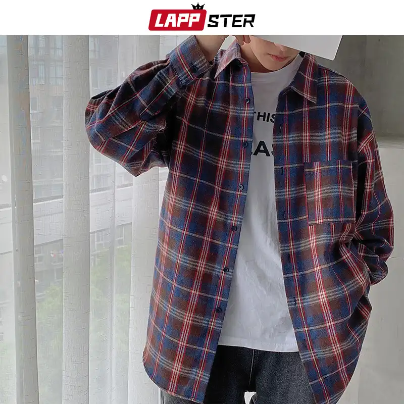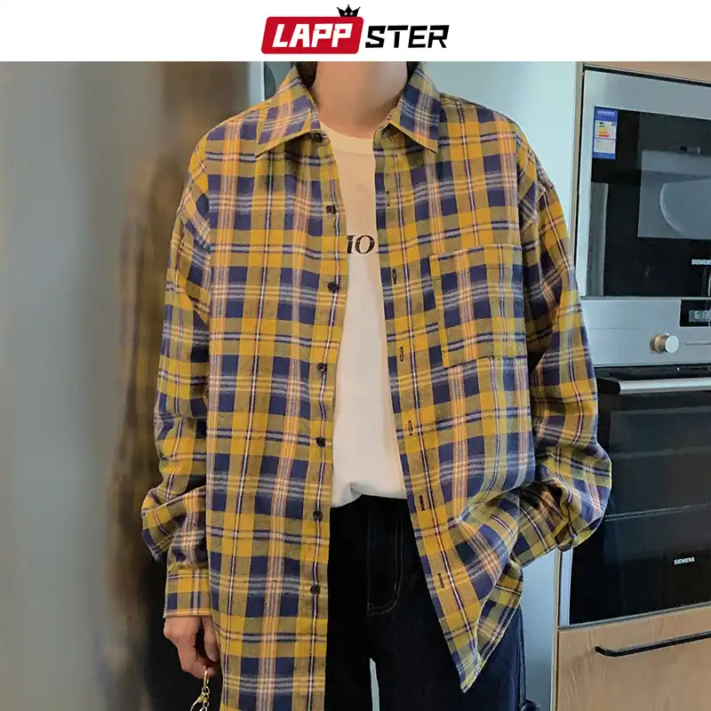 Lappster Uomini Kpop Camicia A Quadri A Maniche Lunghe 2020 Uomo Harajuku Streetwear Hip Hop Camicette Button Up Camicia Di Cotone Di Grandi Dimensioni Piu Formato Camicie Casual Aliexpress