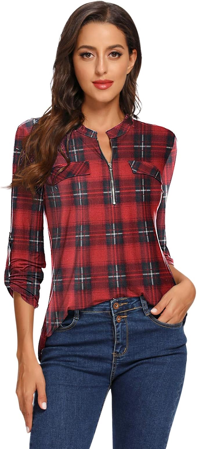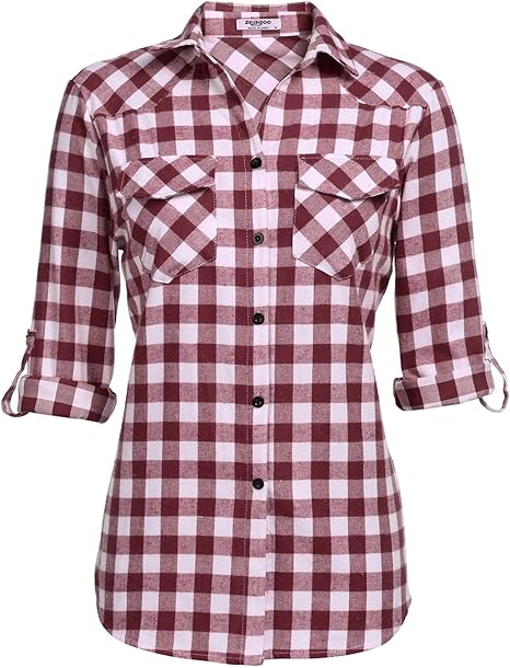 Unibelle Camicia Da Donna A Quadretti Camicia A Quadri A Maniche Lunghe In Cotone Scollo A V Casual Stile Boyfriend Con Maniche Regolabili Taglia S Xxl Rosso Vivo L Amazon It Abbigliamento