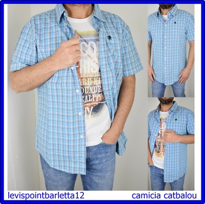 Camicia Da Uomo A Manica Corta Scozzese Quadri Sportiva Celeste In Cotone M L Ebay
