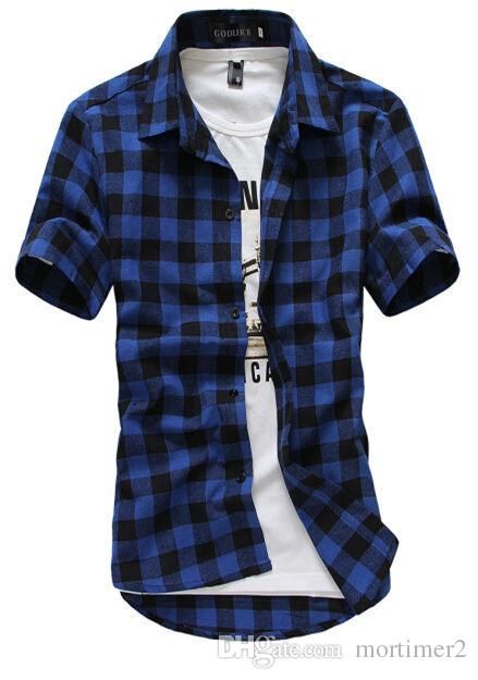Acquista Camicia Da Uomo A Quadri Scozzesi Rossa E Nera Camicie Da Uomo 2016 Nuova Moda Estiva Chemise Homme Camicia A Quadretti A Quadri Camicia A Maniche Corte Da Uomo Cheap A
