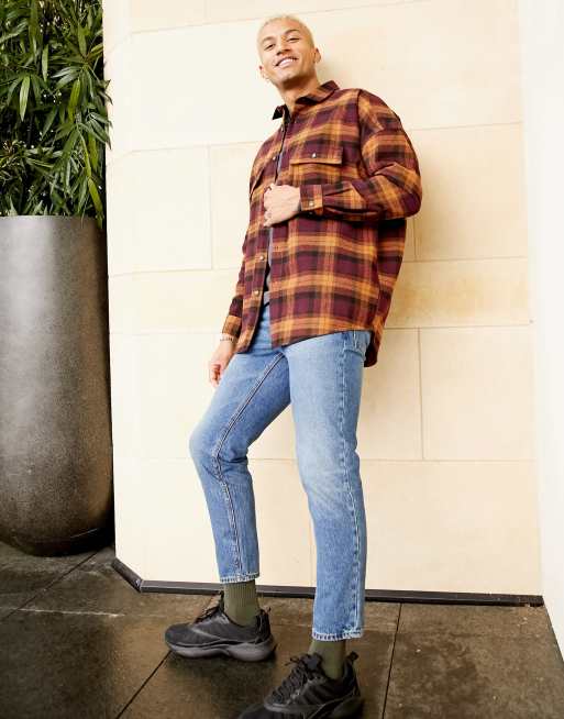 Asos Design Camicia Anni 90 Pesante In Lana A Quadri Bordeaux Asos