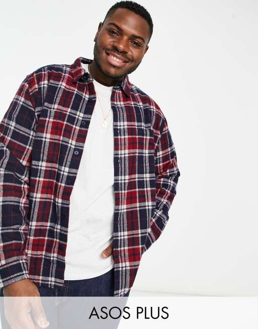 Asos Design Plus Camicia In Misto Lana A Quadri Blu Navy Asos