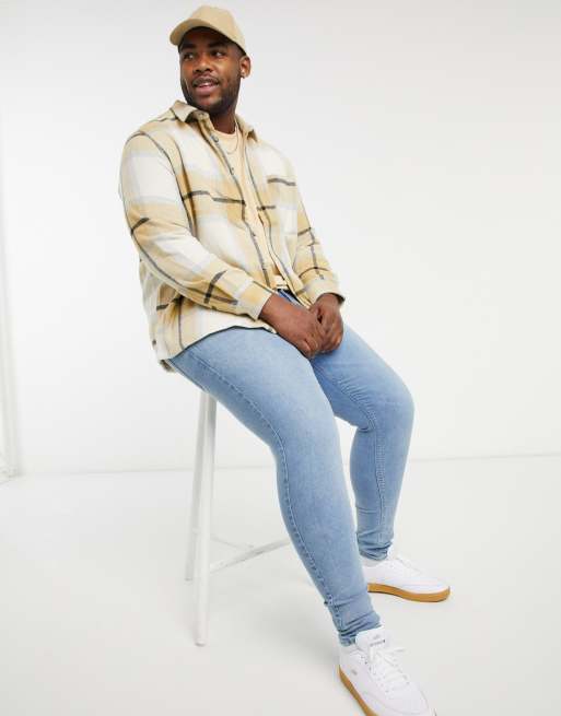 Asos Design Plus Giacca Camicia In Misto Lana A Quadri Grandi Ecru Asos