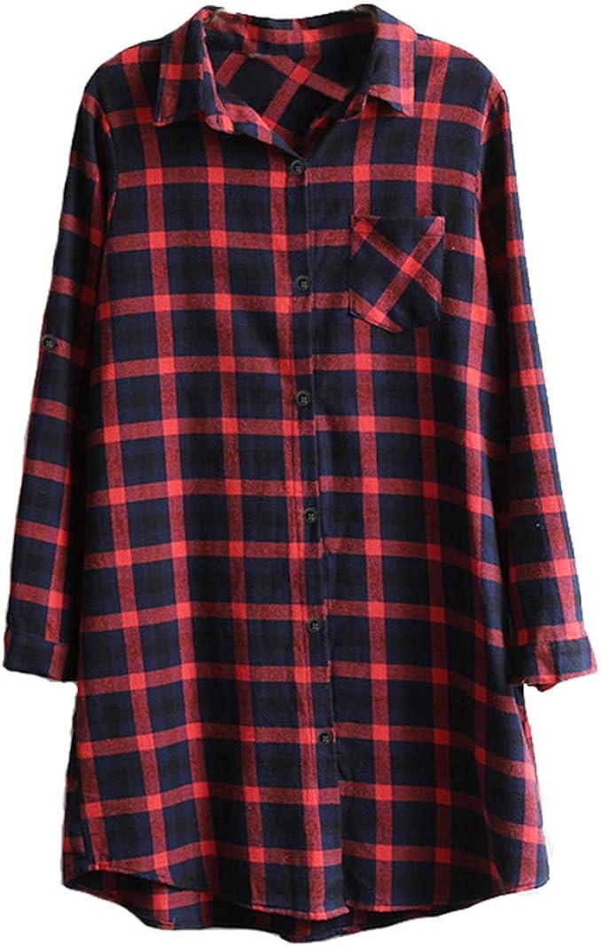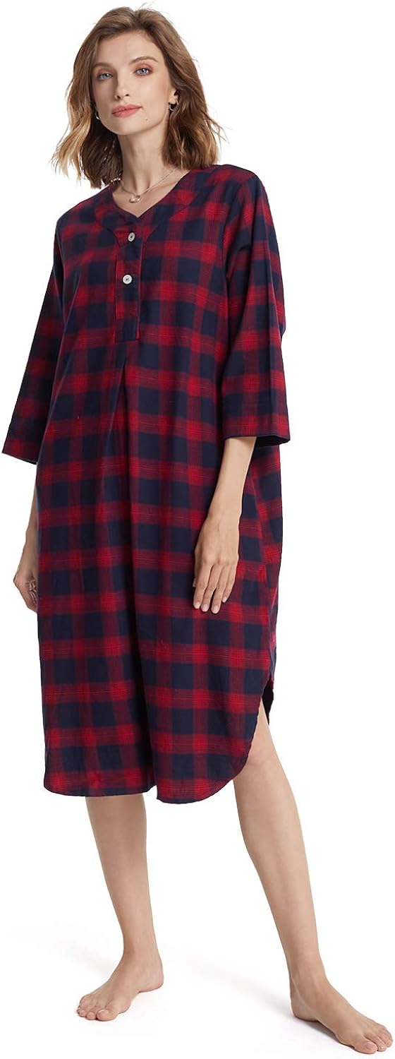 Sioro Camicia Da Notte Da Notte A Maniche Lunghe Da Notte In Cotone A Quadri A Quadri In Flanella Da Notte Camicie Da Notte Abbigliamento Da Notte Lingerie E Intimo