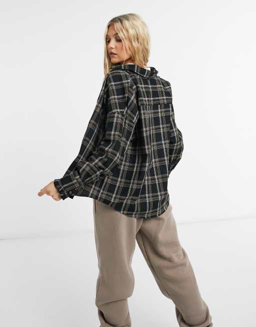 Camicia Oversize Pesante A Quadri Con Maniche Lunghe Boohoo