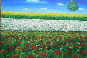 Quadro Il Campo Di Papaveri Olio Su Tela Tecnica Mista Misura 50 Cm X 70 Cm Ebay