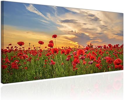 Paul Sinus Art Quadro Di Qualita Un Campo Di Papaveri Al Tramonto Su Tela Stampa Su Tela 3x90x40cm Amazon It Casa E Cucina