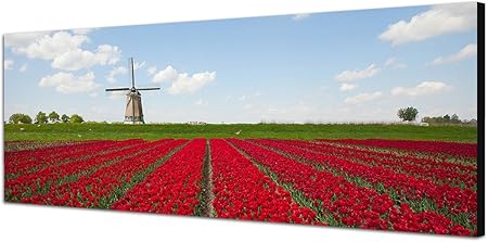 Quadro Da Parete Su Tela Come Panorama In Campo Di Tulipani 150 X 50 Cm Mulino A Vento Cielo Primavera Amazon It Casa E Cucina