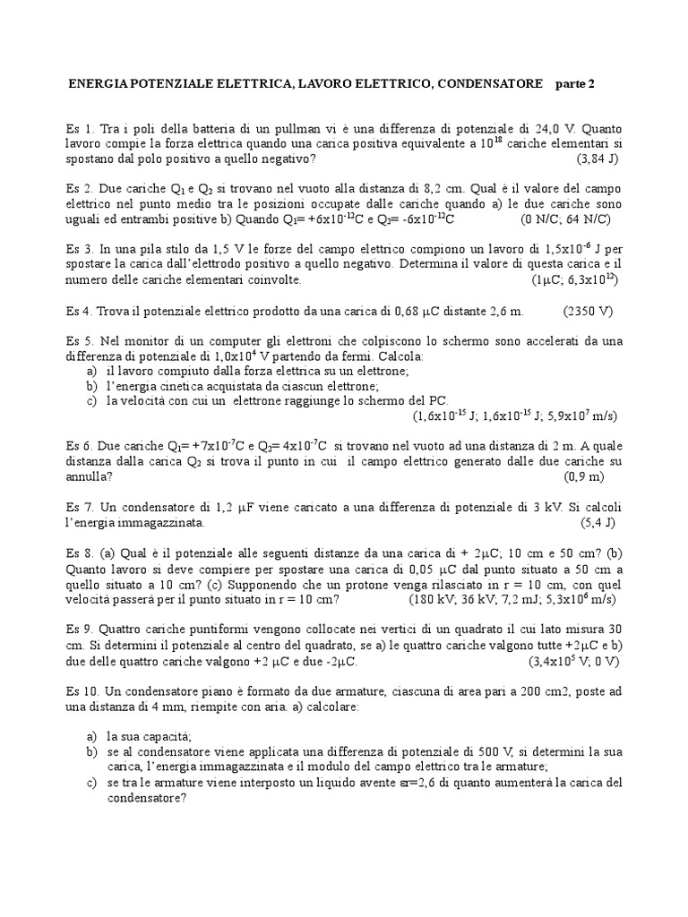 Esercizi Relativi A Campo Elettrico E Potenziale