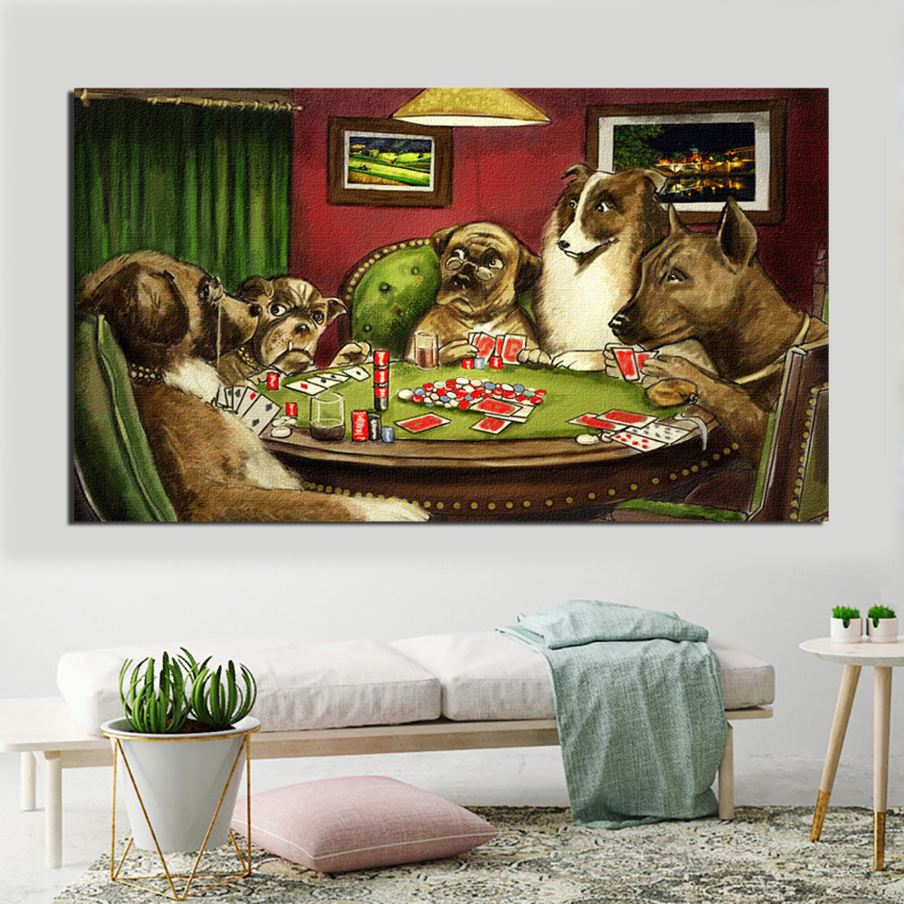 Ebonp Quadro Su Tela Pittura Decorativa Arte Cani Che Giocano A Carte Da Poker Art Poster Print Pollici Immagini Divertenti Decorazione Domestica Della Parete 24x32inch Escuelasoulsurf Cl