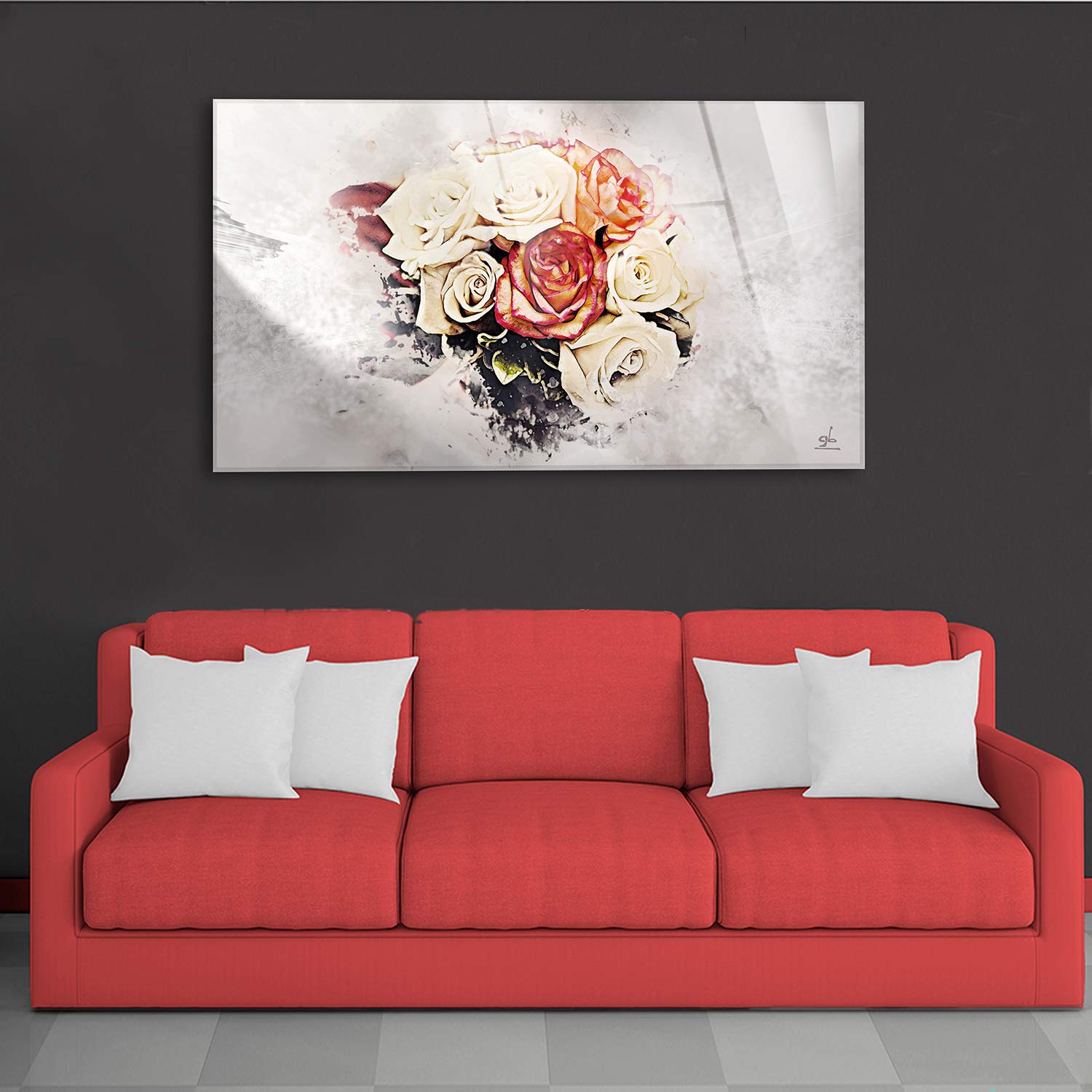 Quadro Moderno Con Fiori Rosa Rossa Stampa Su Tela Di Cotone Con Misure A Scelta