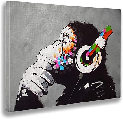 Giallobus Quadri Banksy Dj Monkey Tela Canvas 140x100 Amazon It Casa E Cucina