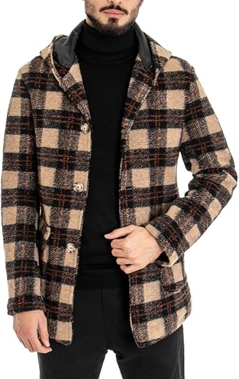 Giosal Cappotto A Quadri Uomo Beige Giubbotto Con Cappuccio Fantasia Scozzese Giaccone Amazon It Abbigliamento