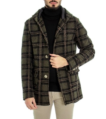 Cappotto A Quadri Uomo Verde Giubbotto Cappuccio Fantasia Scozzese Giaccone C Ebay