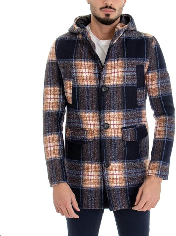 Giosal Cappotto Giaccone Uomo Giubbotto Scozzese Fantasia Quadri Scollo A V Giubbino Amazon It Abbigliamento