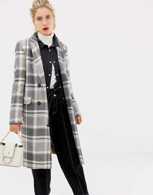 Stradivarius Cappotto Lungo Doppiopetto Grigio A Quadri Asos