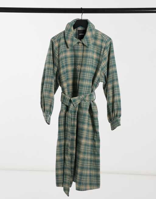 Asos Design Curve Cappotto Doppiopetto Verde A Quadri In Tessuto Spazzolato Asos