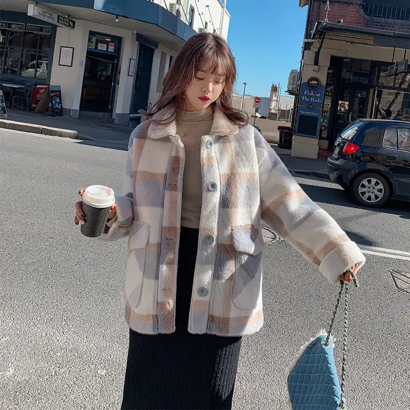 2020 Nuove Donne Di Inverno Giacca Di Lana A Quadri Femminile Per Il Tempo Libero Delle Signore Lunghe Del Manicotto Monopetto Cappotto Delle Ragazze Temperamento Breve Outwear Lana E Misto Lana Aliexpress