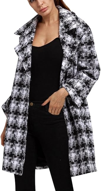 Wdayi Cappotto Pied De Poule Bianco E Nero Autunnale E Invernale Tipo Over Sopra Il Ginocchio Cappotto Di Lana A Quadri Spessi A Sezione Lunga Femminile Amazon It Abbigliamento