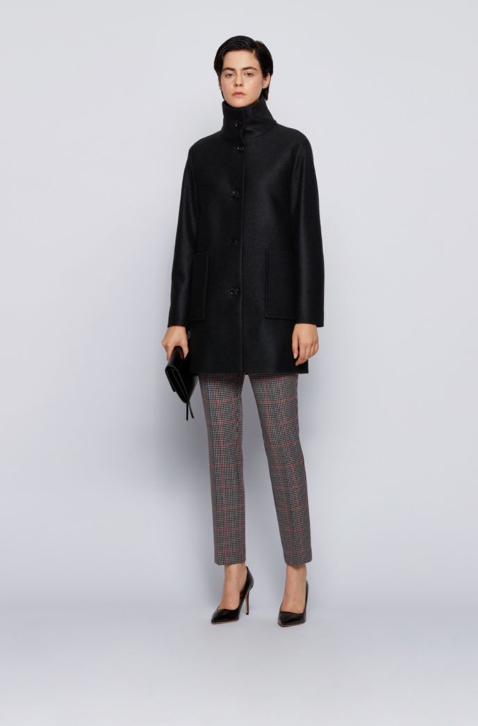 Boss Cappotto Relaxed Fit In Lana Cotta Con Tasche Applicate
